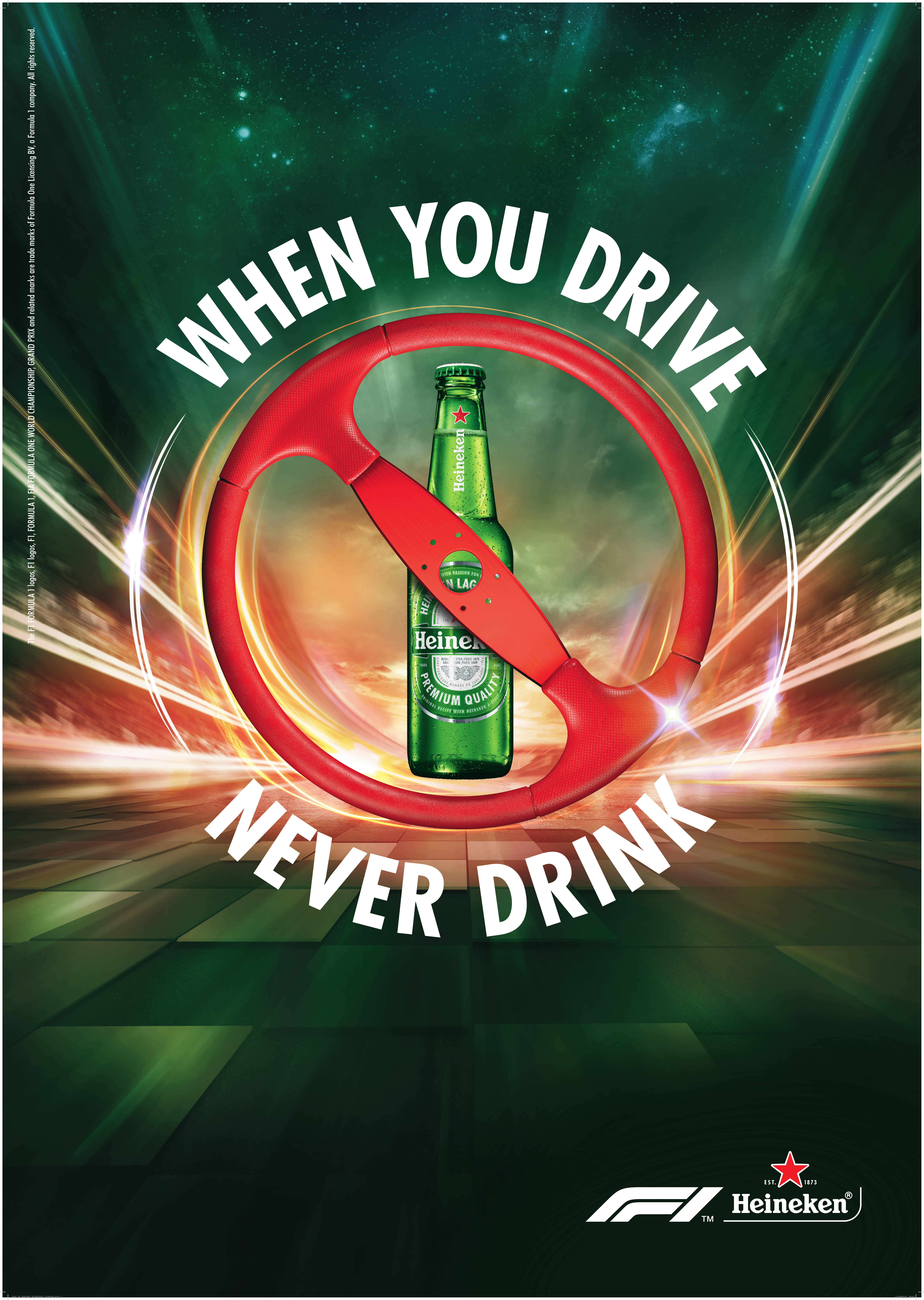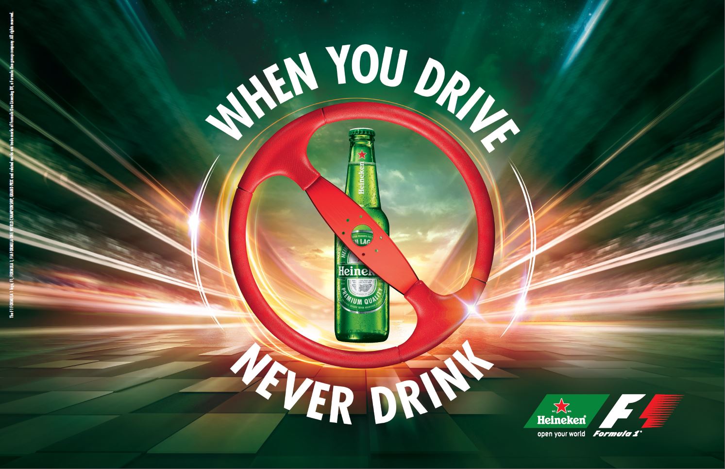 In 2016 ging de wereldwijde samenwerking tussen Heineken en de Formule 1® (F1®) officieel van start. Onderdeel van het Formule 1 sponsorship is de “When You Drive, Never Drink” campagne, een hoofdstuk van het “Enjoy Heineken Responsibly” platform. Hiermee brengt Heineken wereldwijd verantwoord alcoholgebruik wereldwijd onder de aandacht.