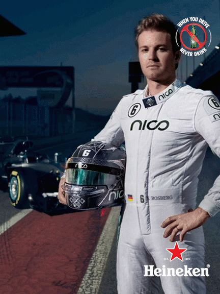 In de nieuwste commercial van Heineken ‘No Compromises’, die gisteren gelanceerd werd, speelt Nico Rosberg de hoofdrol. Nico laat zien dat in de Formule 1 de kleinste dingen het verschil kunnen maken: ‘een beetje te zwaar zijn’, ‘één regendruppel’ of ‘maar één seconde achterstand’ zijn de details waarop wedstrijden gewonnen of verloren worden. En zo werkt het ook met alcohol in het verkeer. Ook wanneer zijn vrienden hem vragen om ‘maar één biertje’ te drinken, zegt hij nee. Hij moet nog rijden en dus slaat hij het Heineken biertje af. De boodschap is duidelijk, “When you drive, just one beer is too many”.