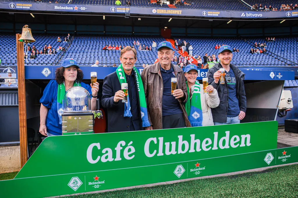ROTTERDAM, 19 april 2026 – Tijdens de KNVB Bekerfinale tussen AZ en NEC verschoof de aandacht in De Kuip even van het veld naar de mensen die het Nederlandse amateurvoetbal mogelijk maken. 750 vrijwilligers zijn namelijk door de KNVB en Heineken in het zonnetje gezet, met als opvallend middelpunt Café Clubhelden: een tijdelijk café pal op het veld. Samen met oud-international Ronald de Boer werden de eerste biertjes voor de vrijwilligers getapt. Met dit initiatief brengen Heineken en de KNVB een zichtbaar eerbetoon aan de vrijwilligers die clubs draaiende houden én aan de sportkantine als het kloppende hart van het Nederlandse voetbal.