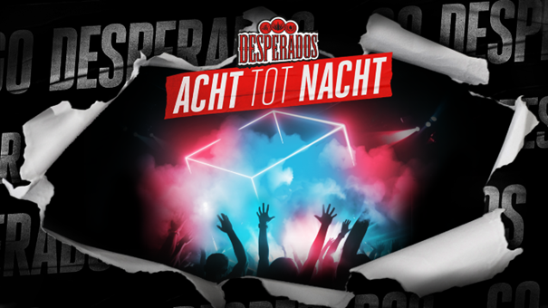 Acht tot Nacht is een nieuw terugkerend feest van Desperados. En élke editie is totaal anders. Samen met clubeigenaren gaat Desperados op zoek naar nieuwe acts zodat geen avond hetzelfde is. ‘’Bij Desperados zijn we altijd op zoek naar iets onverwachts. Daarom zul je op alle Acht tot Nacht feestjes acts tegenkomen die je in die setting nog niet eerder hebt gezien’’. Aldus Els Dijkhuizen, Marketing Directeur Heineken. ‘’We maken heel bewust de acts van te voren niet bekend. Dat is net zo verrassend als een Desperados biertje. Ben je benieuwd wat voor je in petto hebben? Kom dan vooral langs’’.