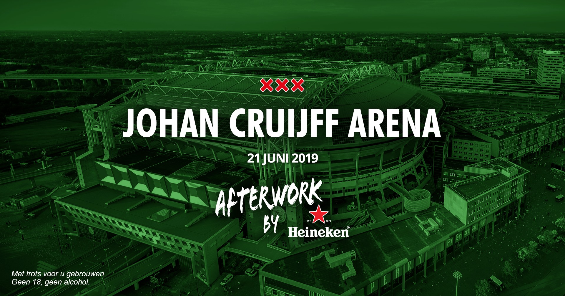 Afterwork by Heineken is dé borrel waar je kunt proosten op het einde van de werkdag en wordt onder andere georganiseerd bij horecapartners van Heineken in Amsterdam, Utrecht, Rotterdam, Den Haag en binnenkort ook in Leiden. De Afterwork by Heineken editie in de Johan Cruijff ArenA is voor zo’n 4000 bezoekers gratis toegankelijk. Dat veel Amsterdammers naar deze editie uitkijken is te zien aan het aantal reacties, inmiddels is de gastenlijst volledig gevuld.