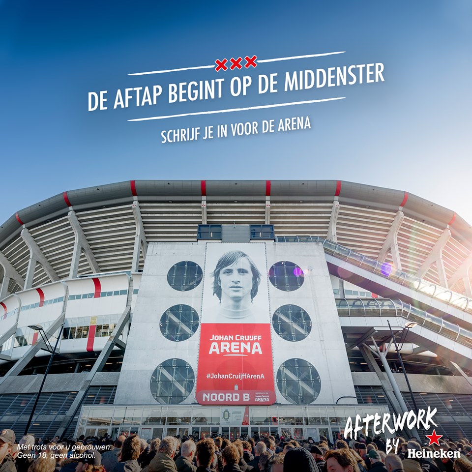 Heineken en de Johan Cruijff ArenA slaan de handen ineen om de grootste Afterwork by Heineken tot dusver te realiseren. Tijdens deze speciale editie op vrijdag 21 juni wordt op het legendarische veld van de Johan Cruijff ArenA de zomer afgetapt. Heineken verandert de middenstip van de Johan Cruijff ArenA in de ‘middenster’ door daar een unieke bar te plaatsen.