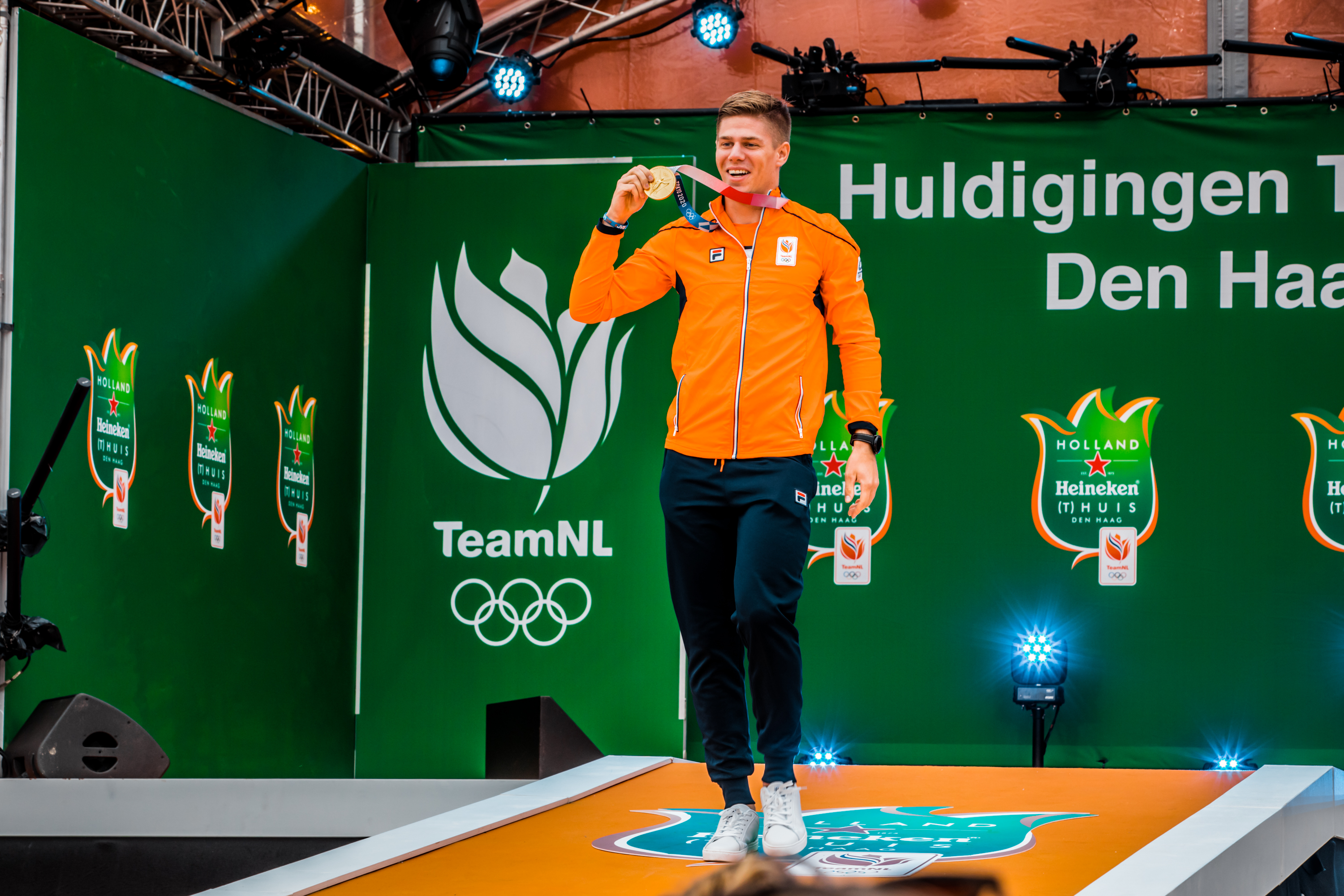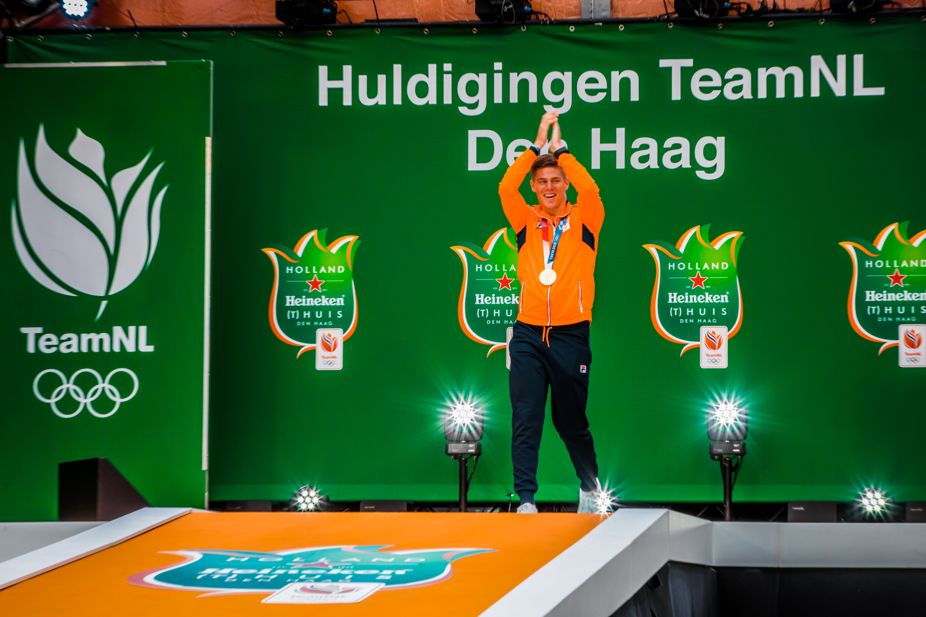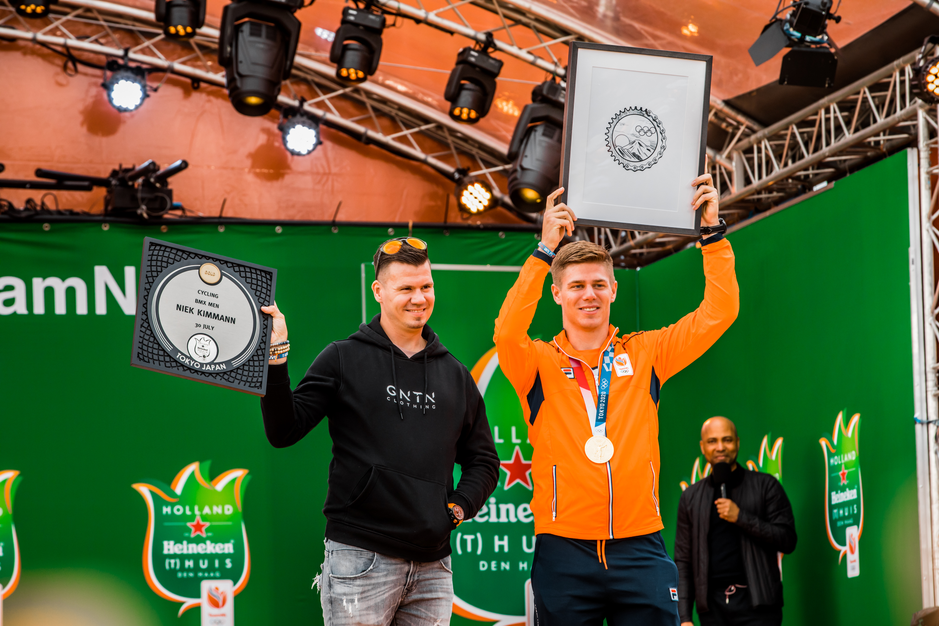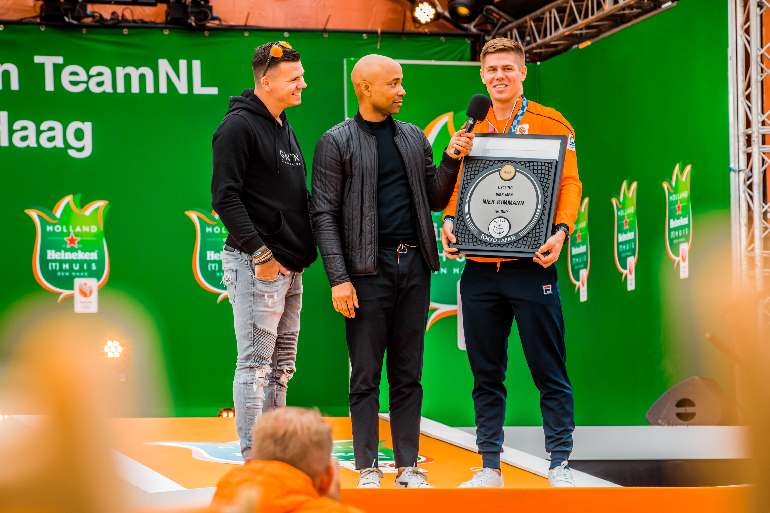 Ook Niek Kimmann werd vanavond extra in het zonnetje gezet voor zijn bijzondere prestatie. De eerste gouden BMX medaille ooit voor Nederland maakte veel los. Niek droeg in Tokyo zijn medaille al mede op aan zijn vriend Jelle van Gorkum, die op de Spelen in Rio een zilveren medaille wist te veroveren. Na het ongeluk van Jelle in 2018 was er voor Niek maar één doel. De gouden medaille pakken in Tokyo, want die miste nog voor het Nederlandse team. Op Niek's vraag of Jelle naar de huldiging kwam zei hij een dag van tevoren nog: "De moeder van m'n vriendin is jarig, ik kan er dus niet bij zijn." Tot Niek's grote verrassing kwam zijn vriend toch ineens het podium op. In het Holland Heineken (t)Huis reikte hij niet alleen de tegel uit maar kreeg Niek ook nog een heel speciaal cadeau. Jelle ontwierp samen met de Haarlemse tattoo-artist een tattoo voor zijn vriend Niek, waar de verhalen van de mannen samenkomen. Of de vraag van Humberto of de tattoo ook daadwerkelijk gezet gaat worden kwam nog geen verlossend antwoord.