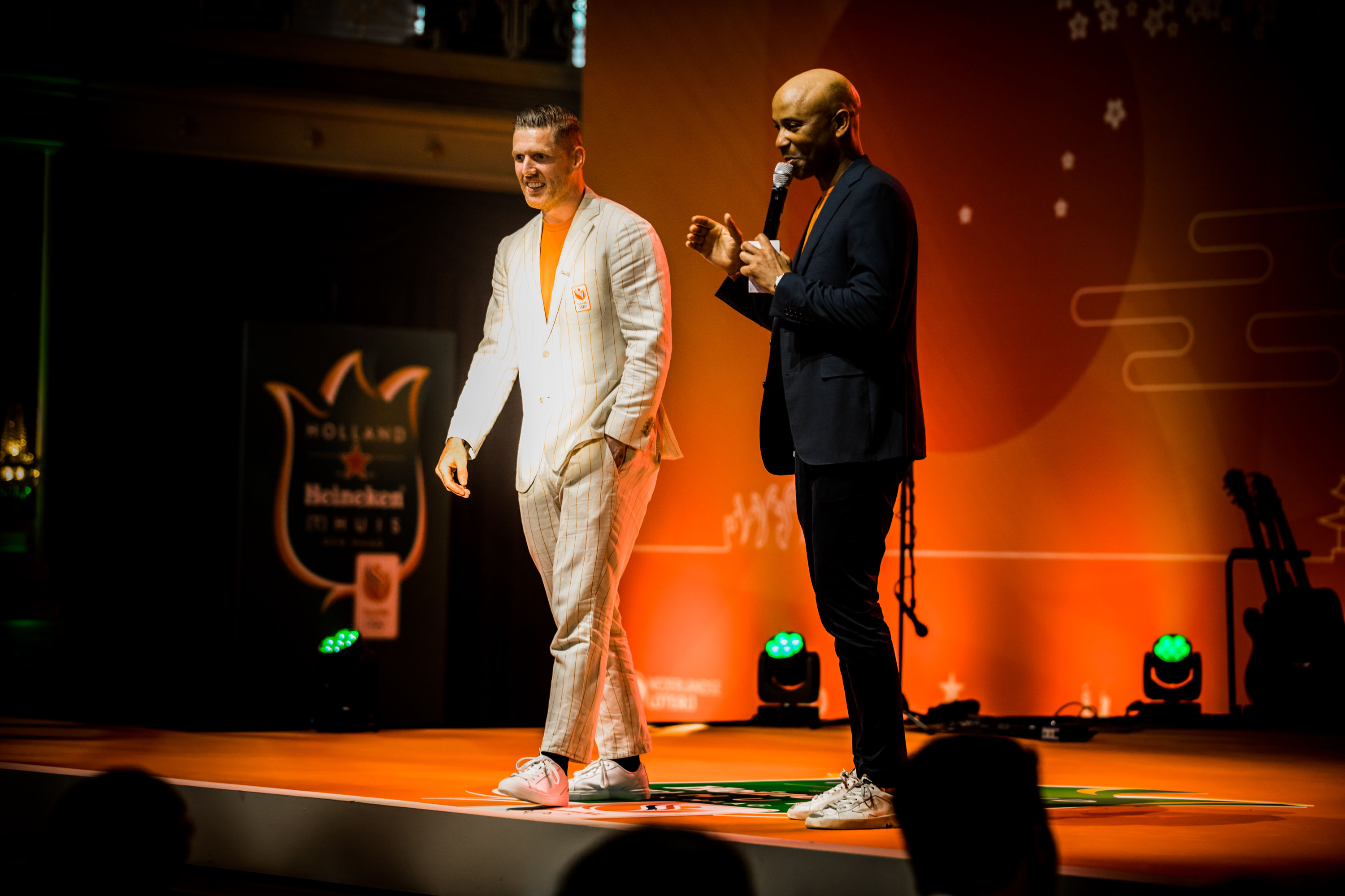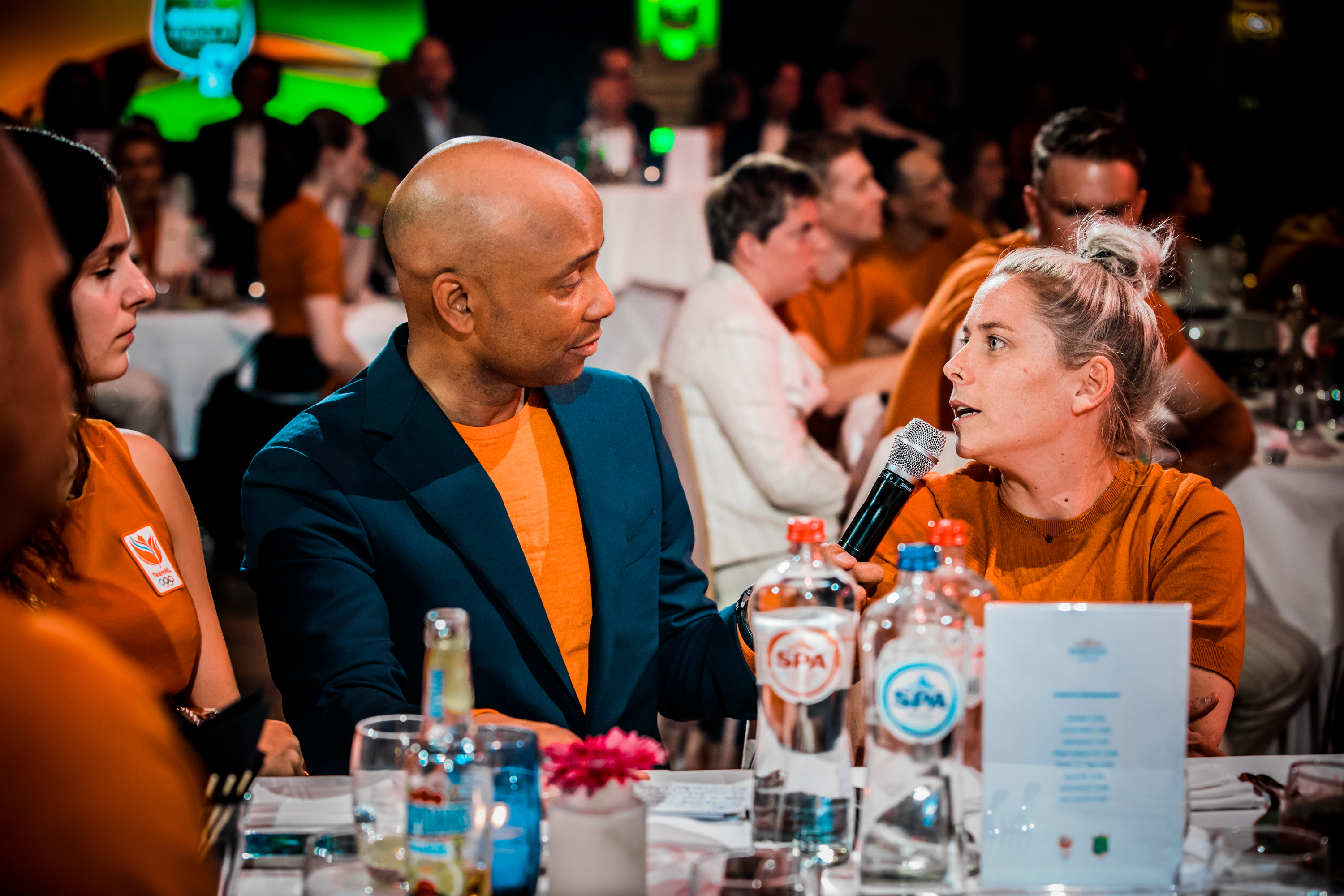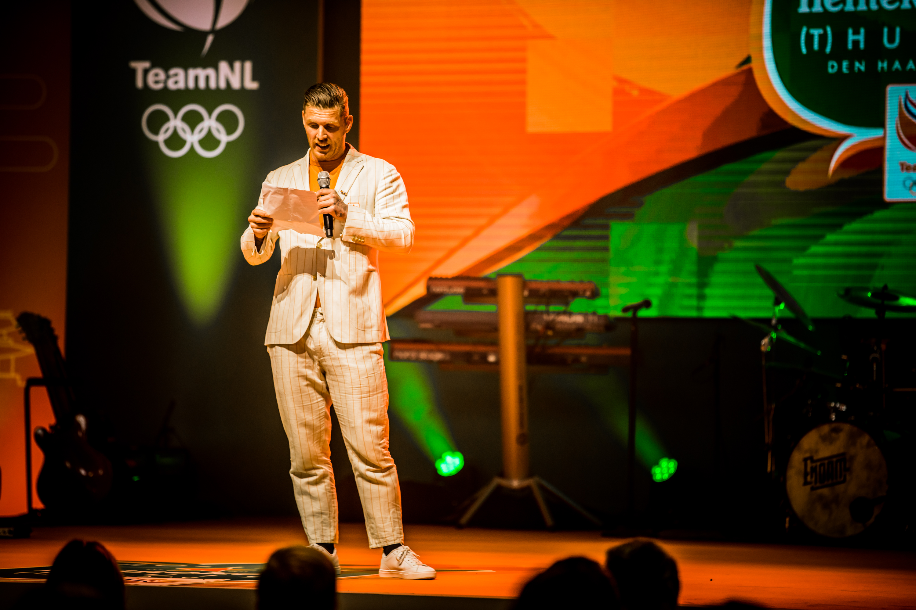 Vervolgens was het de beurt aan de watersporters. Zwemster Chantalle Zijderveld won twee keer goud, twee keer zilver en één keer brons. Welke het beste voelde, vroeg Humberto Tan haar. “De 100 meter schoolslag is toch wel mijn kindje. Het was mijn revenge op Rio. Maar goud was ook wel een lekkere om mijn carrière af te sluiten hoor.” Roeier Stef Broenink rijkte de tegels uit. “Acht sporters met achttien medailles. Wat een ongelooflijke prestatie. Zelfs als we met alleen watersporters waren gegaan waren we nog als 24-ste land geëindigd. Jullie hebben daarmee echt laten zien dat Nederland een watersportland is.”