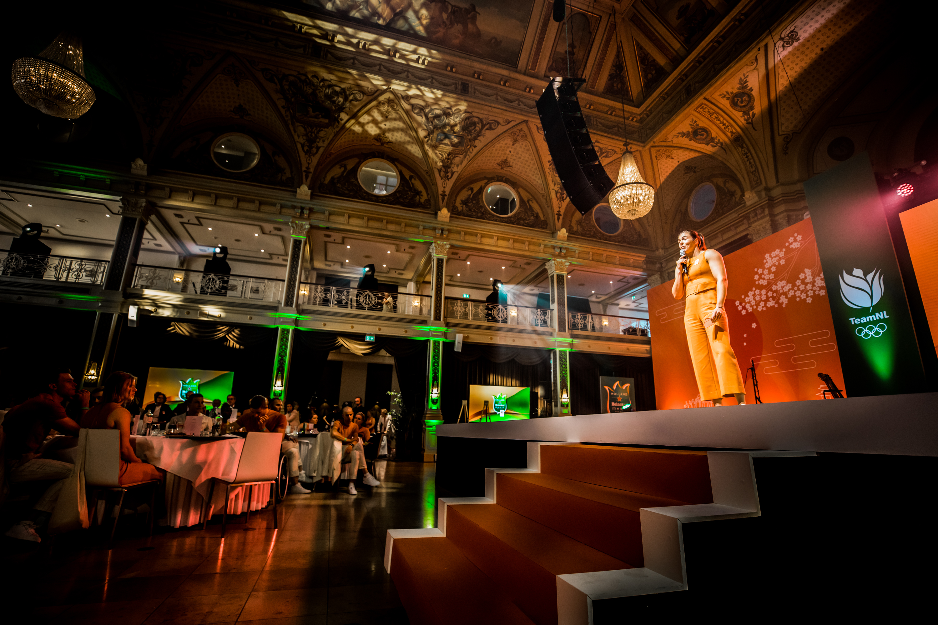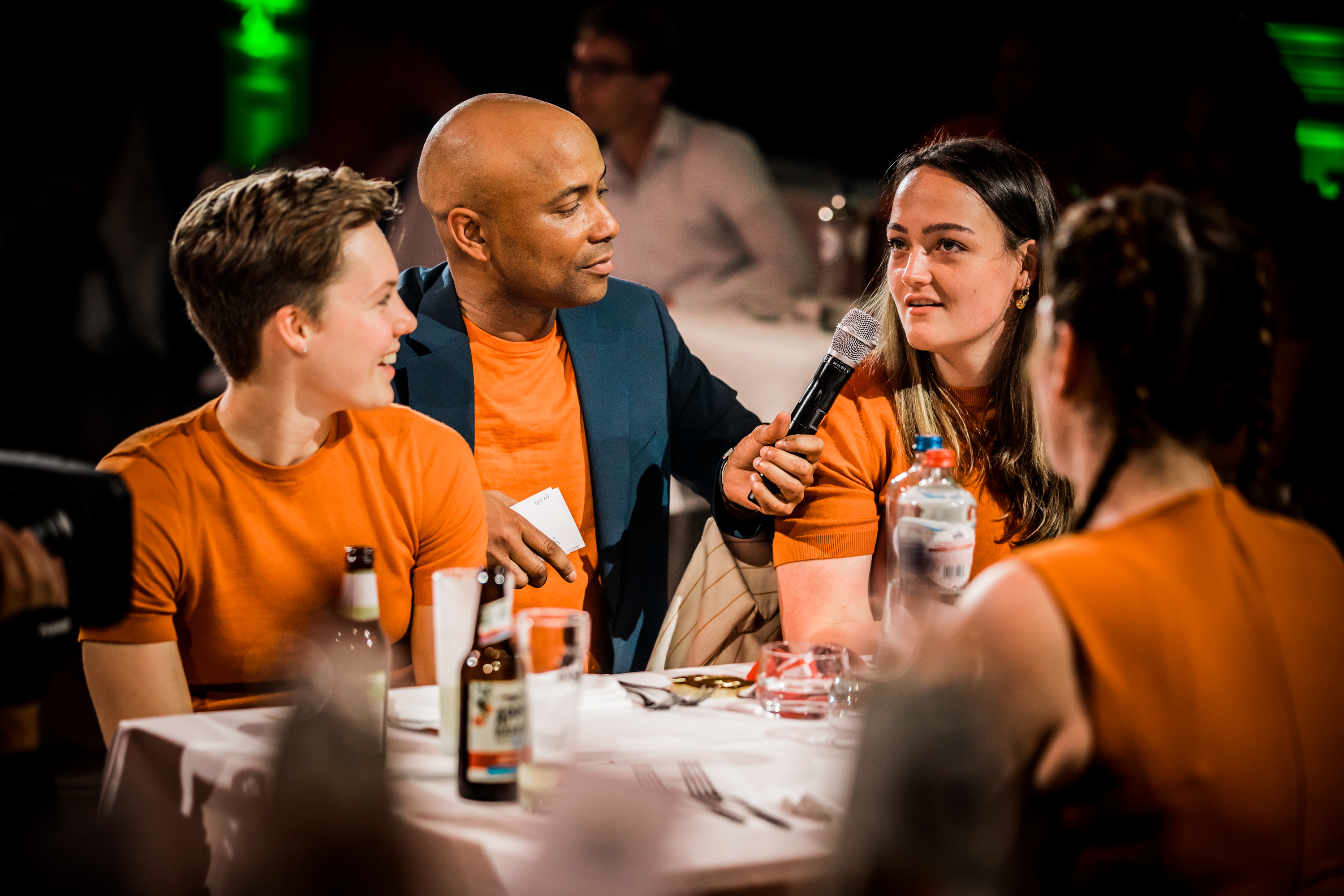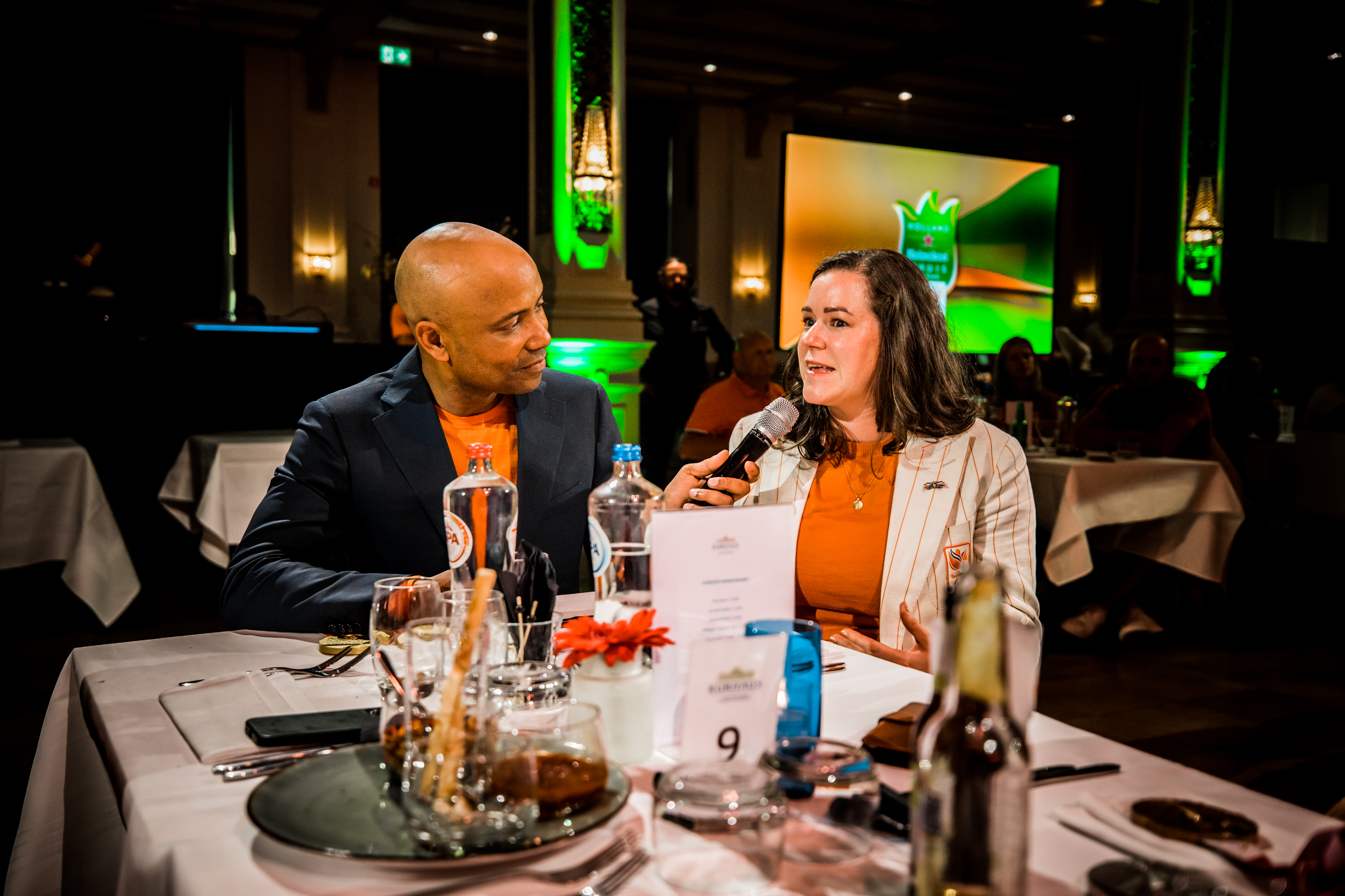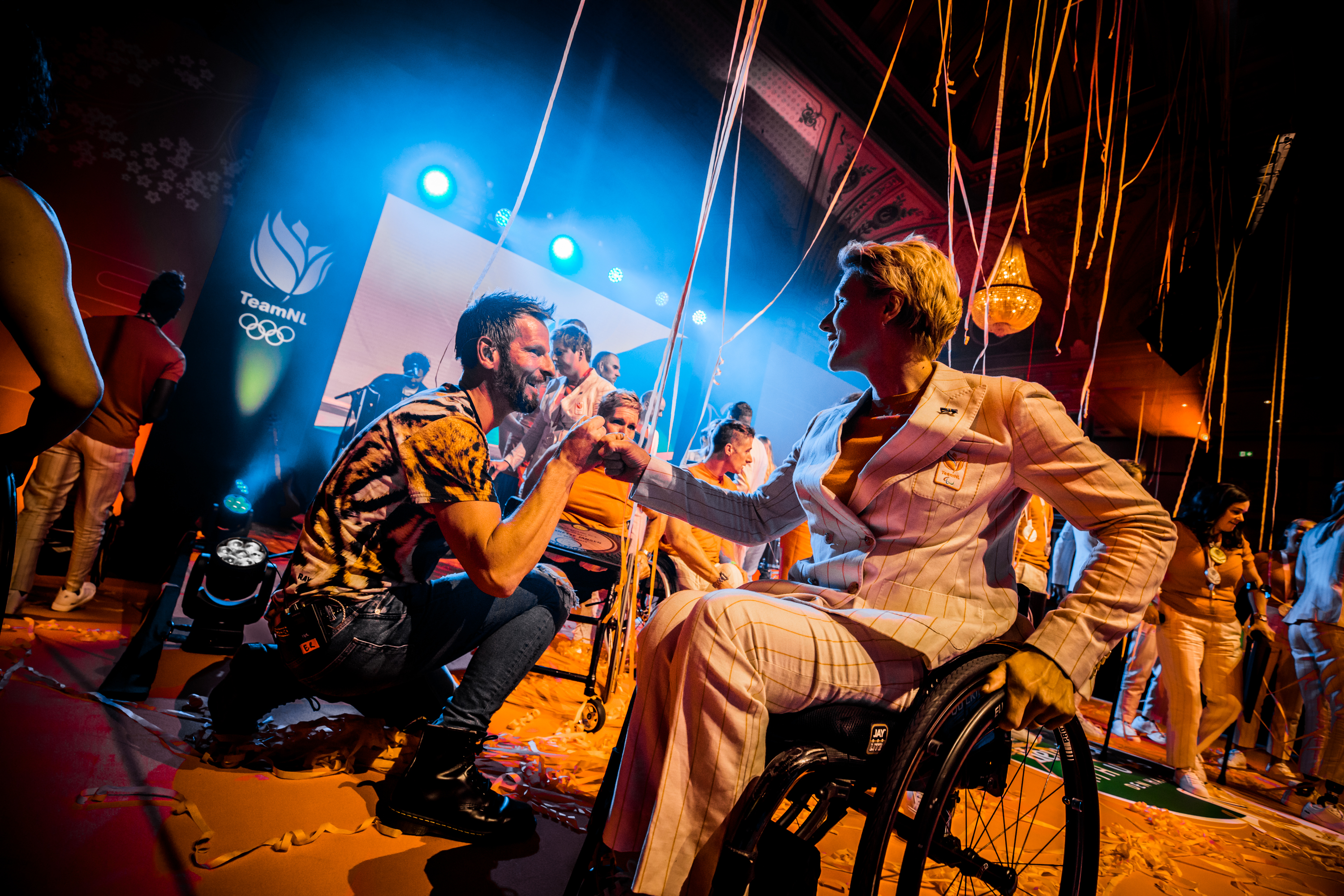 Vervolgens was het de beurt aan de watersporters. Zwemster Chantalle Zijderveld won twee keer goud, twee keer zilver en één keer brons. Welke het beste voelde, vroeg Humberto Tan haar. “De 100 meter schoolslag is toch wel mijn kindje. Het was mijn revenge op Rio. Maar goud was ook wel een lekkere om mijn carrière af te sluiten hoor.” Roeier Stef Broenink rijkte de tegels uit. “Acht sporters met achttien medailles. Wat een ongelooflijke prestatie. Zelfs als we met alleen watersporters waren gegaan waren we nog als 24-ste land geëindigd. Jullie hebben daarmee echt laten zien dat Nederland een watersportland is.”