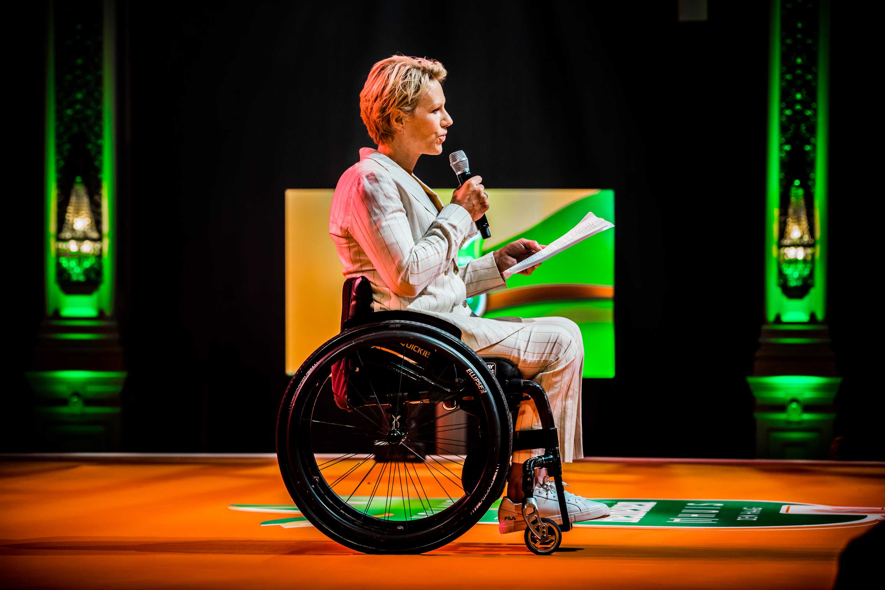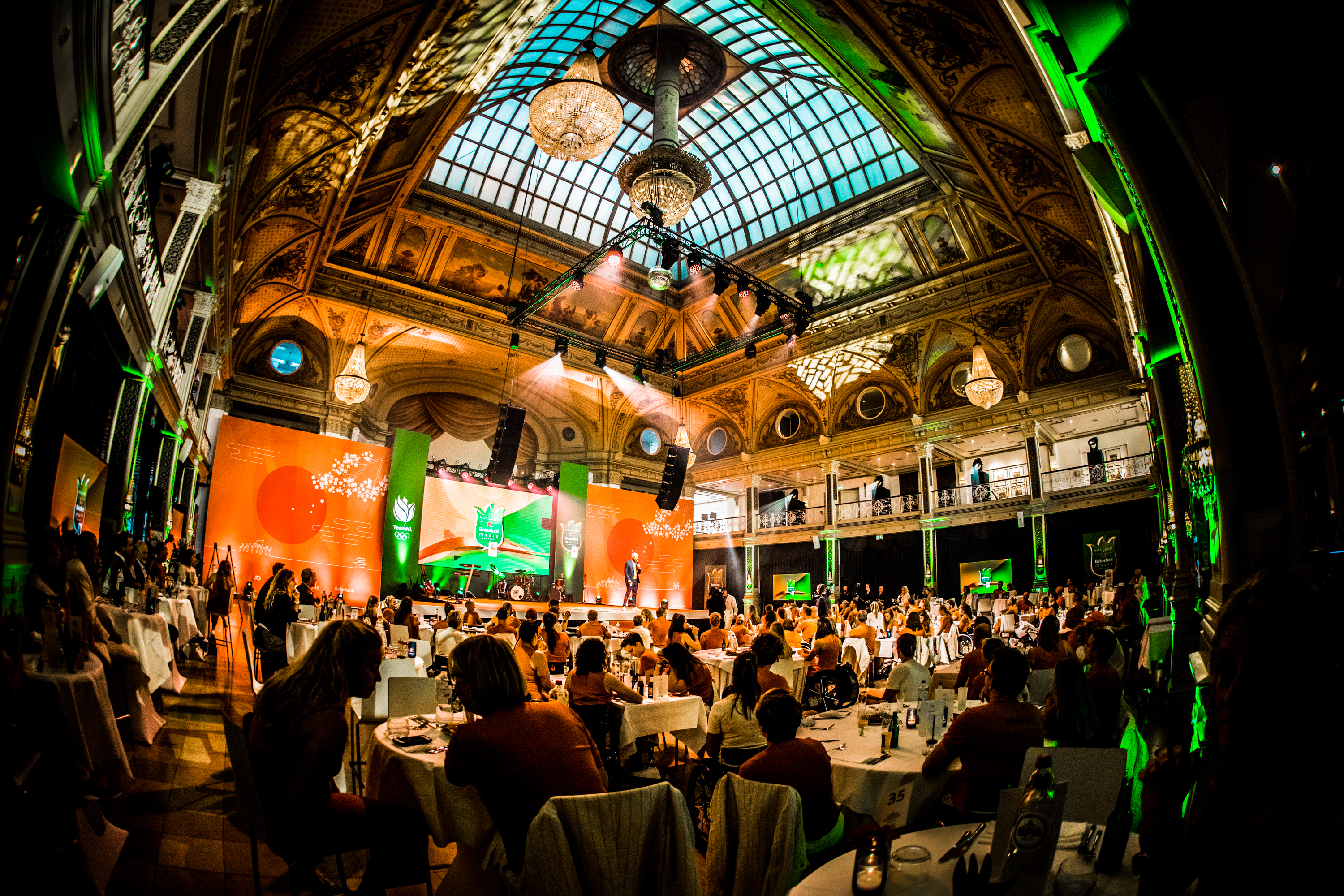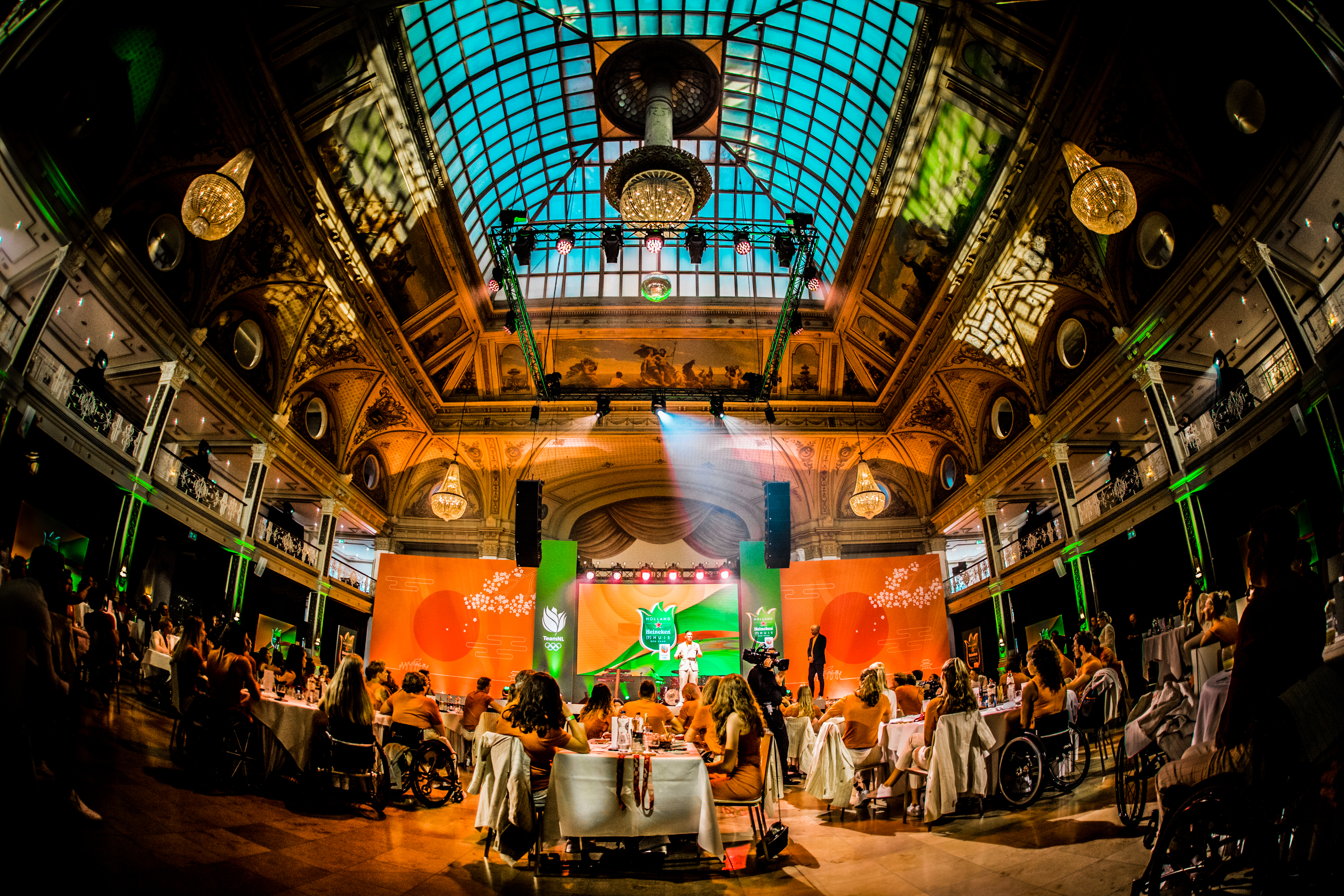 De medailleregen op de Paralympische Spelen in Tokio werd vanavond feestelijk afgesloten in het Kurhaus in het zonnige Scheveningen. Alle 59 medaillewinnaars ontvingen uit handen van Humberto Tan een Holland Heineken (t)Huis-eretegel en werden per groep toegesproken door een topsporter. En daar genoten ze zichtbaar van.