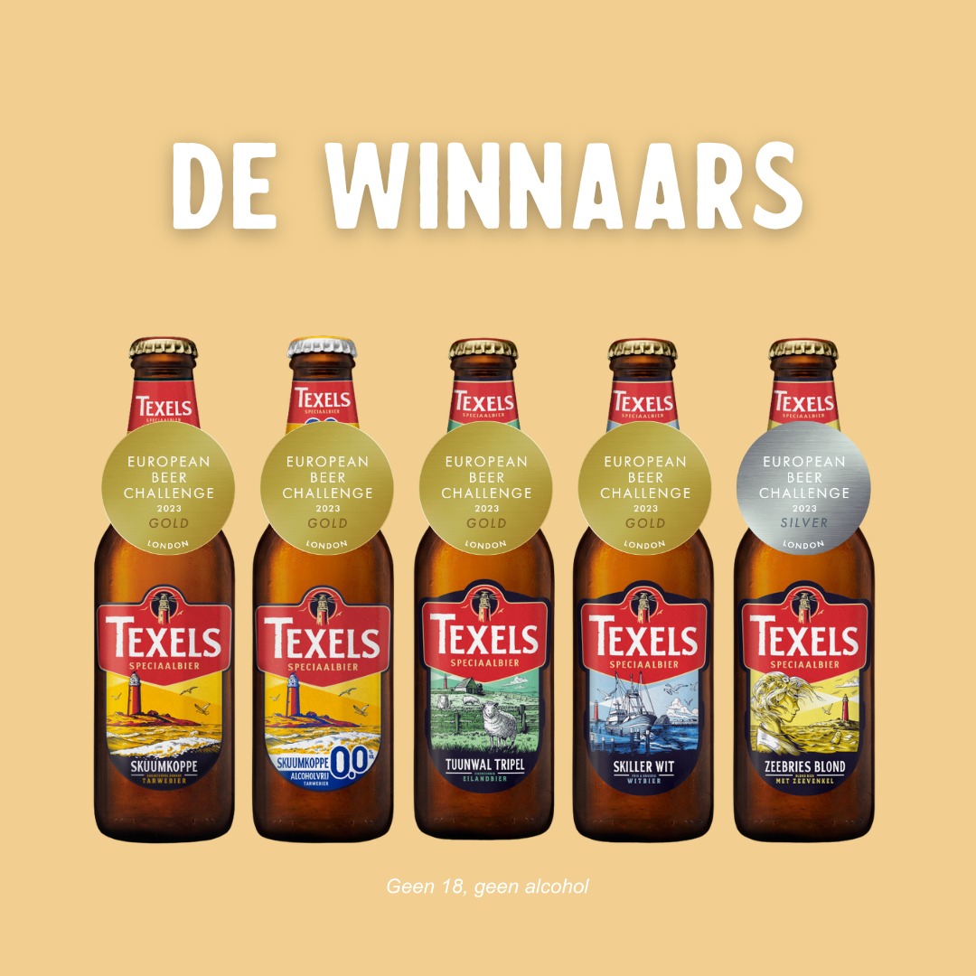 Texels Skuumkoppe won de gouden medaille in de categorie Dunkelweizen, terwijl Texels Skuumkoppe 0.0 de gouden medaille in de categorie Alcoholvrij in de wacht sleepte. Texels Tuunwal Tripel won goud in de categorie Abdij Bier, en Texels Skiller Wit werd bekroond met de gouden medaille in de categorie Belgisch witbier. De Texels Zeebries Blond ontving een zilveren medaille in de categorie Belgisch Blond.